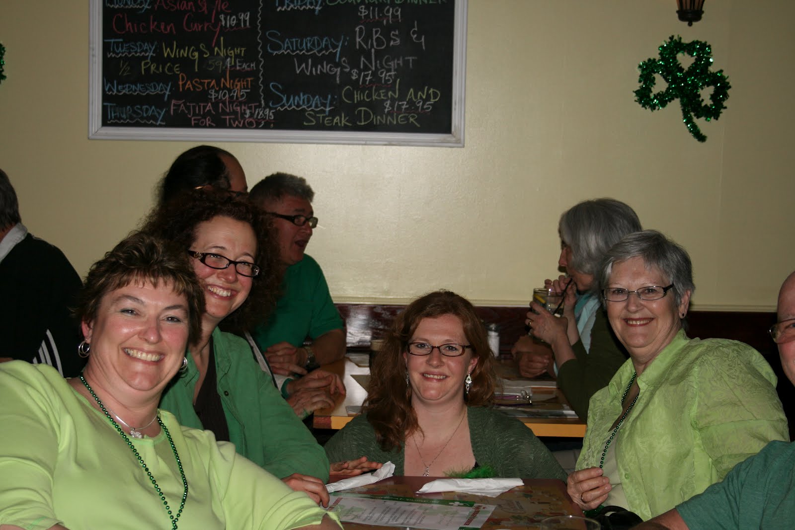 Well I had a fun weekend this weekend!!!!! Courtney was singing at Buggy's Diner on Main Street in Stouffville and my Mom decided that we should go and surprise her! So Saturday morning she came and picked me up and we headed Stouffville way. We stopped in to see Granny first to wish her a Happy St. Patrick's Day and to give her some green "bling" to wear for the day!
